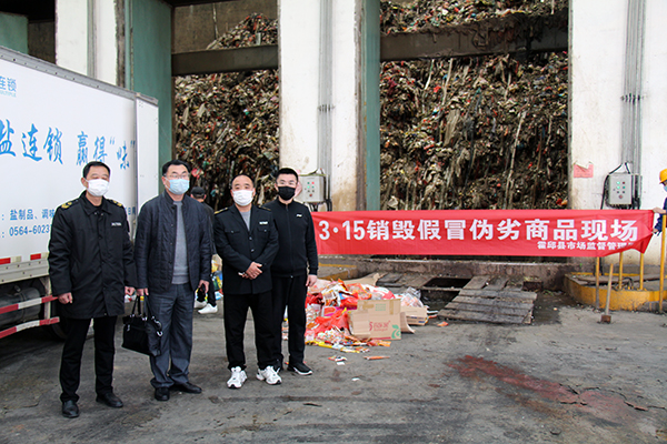 霍邱海創(chuàng )協(xié)助霍邱縣市場(chǎng)監督管理局銷(xiāo)毀假冒偽劣商品