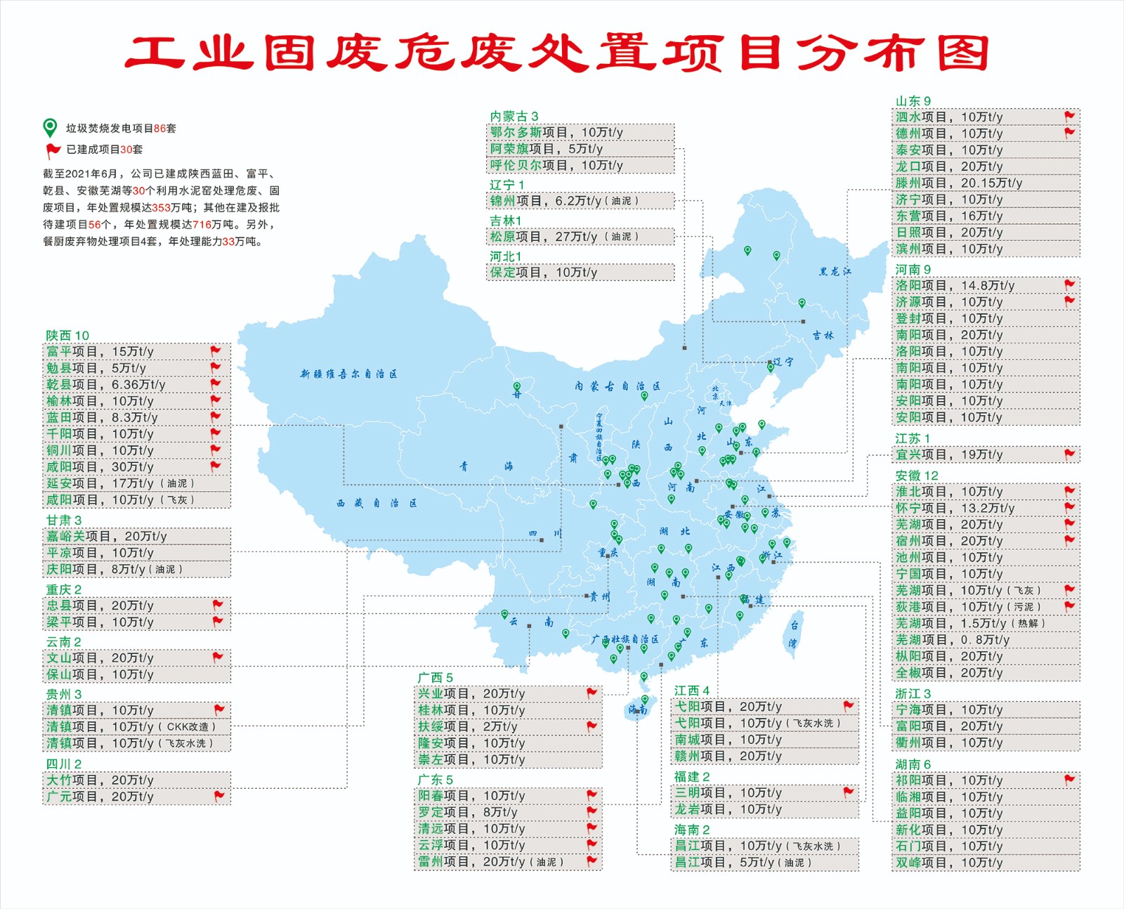 公司自成立以來(lái),業(yè)務(wù)迅速推廣應用到24個(gè)省市自治區,并出口至泰國、巴基斯坦、印尼、巴西、越南、緬甸、土耳其、日本、印度、老撾等共12個(gè)國家,主要產(chǎn)業(yè)范圍已覆蓋至工業(yè)余熱發(fā)電(如水泥、鋼鐵等冶金行業(yè)的余熱發(fā)電等);燃煤電站(主要配套水泥線(xiàn)等工業(yè)電力供應);利用水泥窯協(xié)同處理城市生活垃圾、污泥等;爐排爐垃圾焚燒發(fā)電。