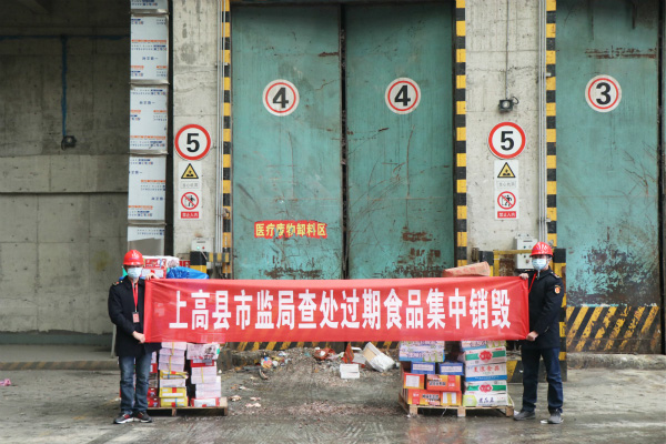 上高海創(chuàng )協(xié)助上高縣市場(chǎng)監督管理局集中銷(xiāo)毀過(guò)期食品