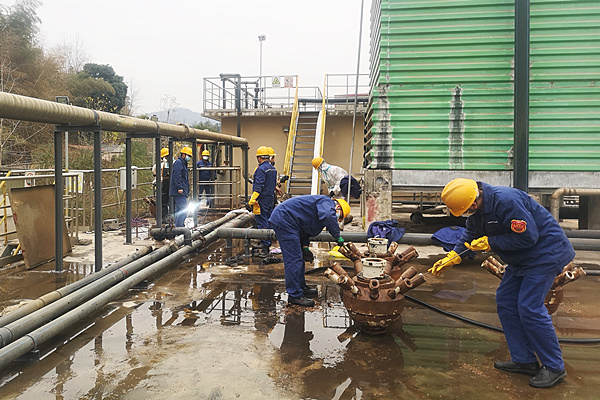 干部帶頭勇?lián)?,身先士卒保生產(chǎn)——記銅仁海創(chuàng )組織硝化池曝氣器維護清理作業(yè)
