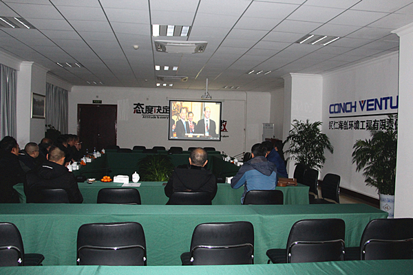 ? ? 參觀(guān)完后,公司邀請村民代表在五樓會(huì )議室觀(guān)看了爐排爐發(fā)電及固廢危廢項目宣傳片并召開(kāi)座談會(huì )。