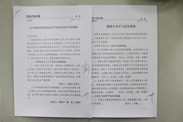 ? ? 此前根據省市部門(mén)氣象預報信息,為做好持續雨雪冰凍天氣防范應對工作,確保安全生產(chǎn),公司提前組織制定了《低溫大雪天氣應急預案》。