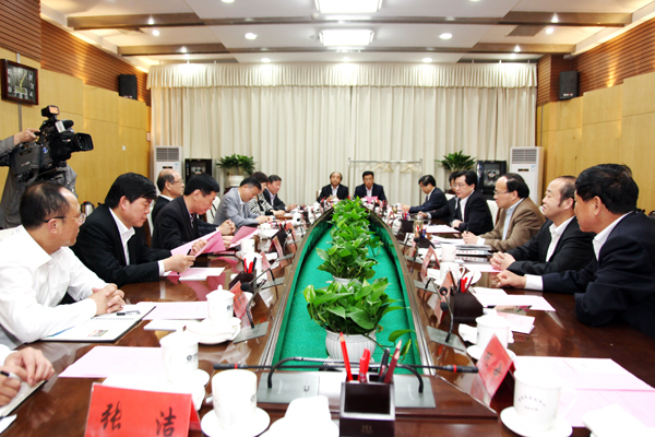 ??? 為積極響應省委、省政府加速皖北經(jīng)濟振興的號召,應亳州市委、市政府政府邀請。2013年5月10日,海螺集團公司董事長(cháng)郭文叁、海創(chuàng )公司董事長(cháng)郭景彬等赴亳州市考察,尋求投資合作的可能性。亳州市委書(shū)記楊敬農、市長(cháng)沈強等接待了考察組一行。