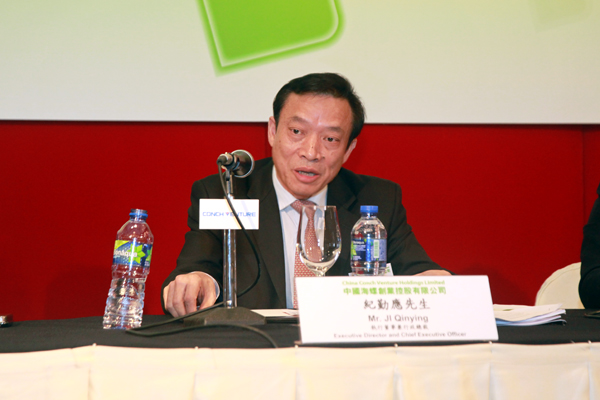 ??? ?2014年4月1日,海螺創(chuàng )業(yè)在香港港島香格里拉酒店舉行2013年業(yè)績(jì)發(fā)布會(huì ),公司董事長(cháng)郭景彬、執行董事兼總經(jīng)理紀勤應、公司秘書(shū)疏茂、財務(wù)部副部長(cháng)陳興強等參加會(huì )議。這是海螺創(chuàng )業(yè)自去年12月19日上市后首次召開(kāi)業(yè)績(jì)發(fā)布會(huì ),倍受市場(chǎng)關(guān)注,近138名投資者及分析員參加了會(huì )議,現場(chǎng)座無(wú)虛席,會(huì )場(chǎng)氣氛熱烈而隆重。