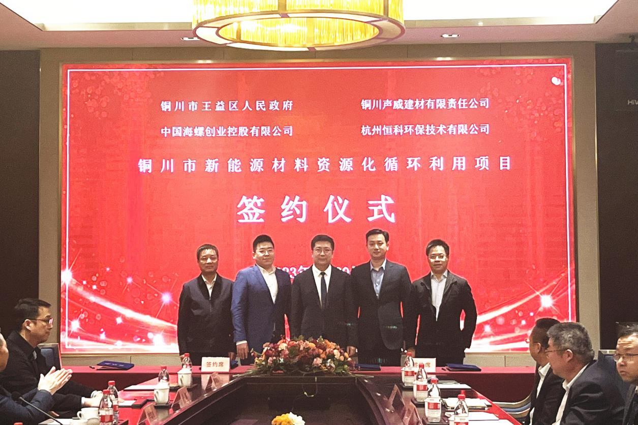 銅川市王益區常務(wù)副區長(cháng)焦耀奇,海螺創(chuàng )業(yè)常務(wù)副總經(jīng)理、海創(chuàng )循環(huán)董事長(cháng)疏茂,陜西聲威集團總經(jīng)理趙挺,杭州恒科環(huán)保公司董事長(cháng)吳濤分別作為代表進(jìn)行簽約。
