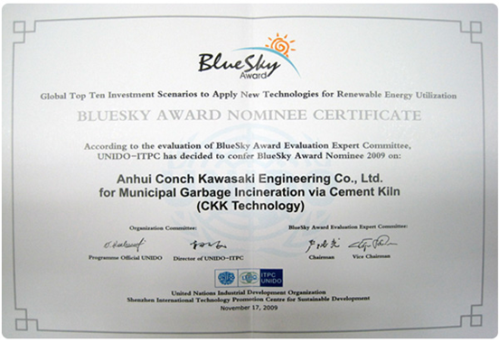 海螺創(chuàng )業(yè)利用水泥窯處置生活垃圾技術(shù)獲得聯(lián)合國“藍天獎”提名