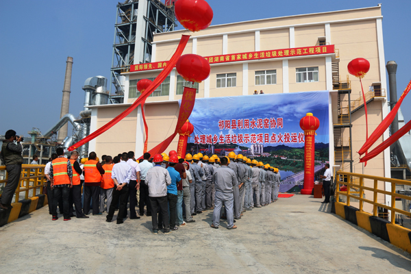 ? ? 2015年10月22日,由海螺創(chuàng )業(yè)承建并運營(yíng)的祁陽(yáng)縣利用水泥窯協(xié)同處理城市生活垃圾示范項目正式投產(chǎn)運營(yíng)。海螺創(chuàng )業(yè)副總經(jīng)理李大明,祁陽(yáng)縣委書(shū)記魏湘江、副書(shū)記宋振平、縣人大主任黃春華、常務(wù)副縣長(cháng)黃贊校,及縣直相關(guān)單位、相關(guān)鄉鎮領(lǐng)導和調試專(zhuān)家組、施工單位代表等共120余人參加了投產(chǎn)儀式。