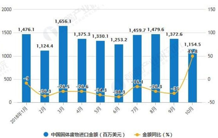 ? ? 10月中國固體廢物進(jìn)口量明顯下降