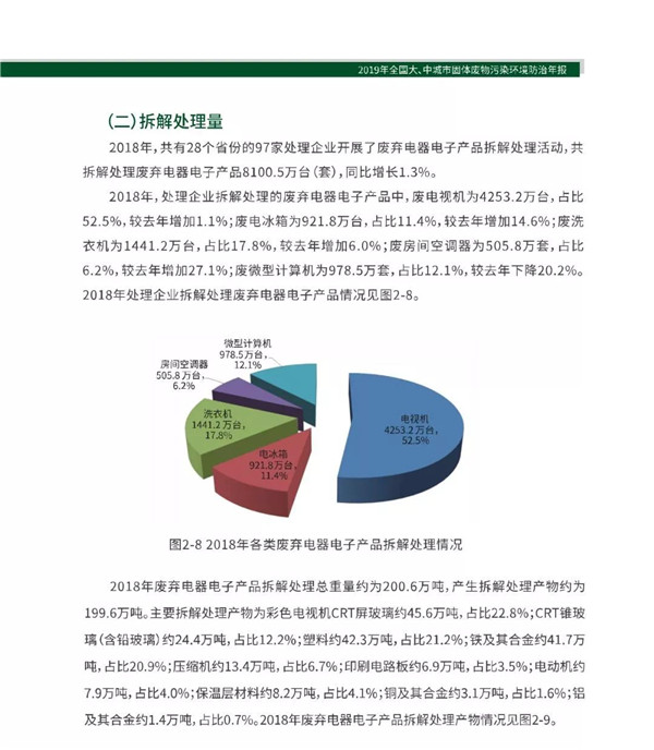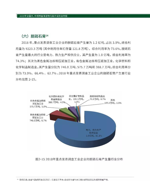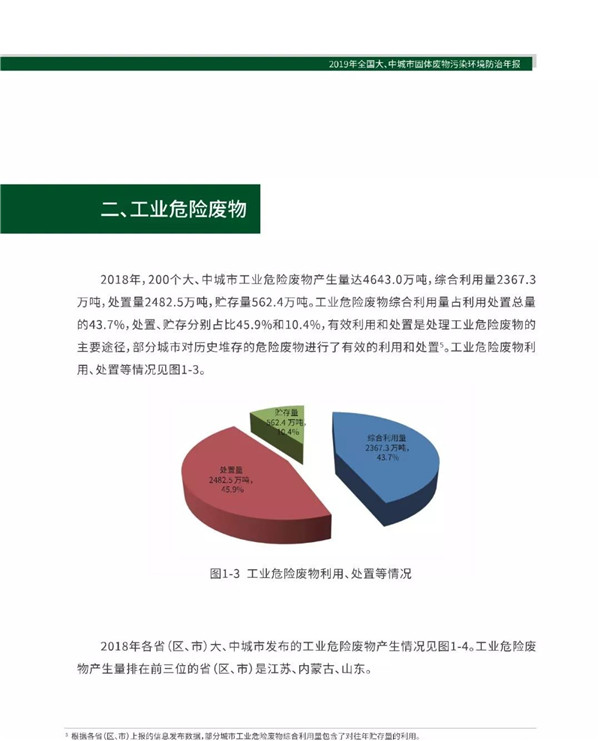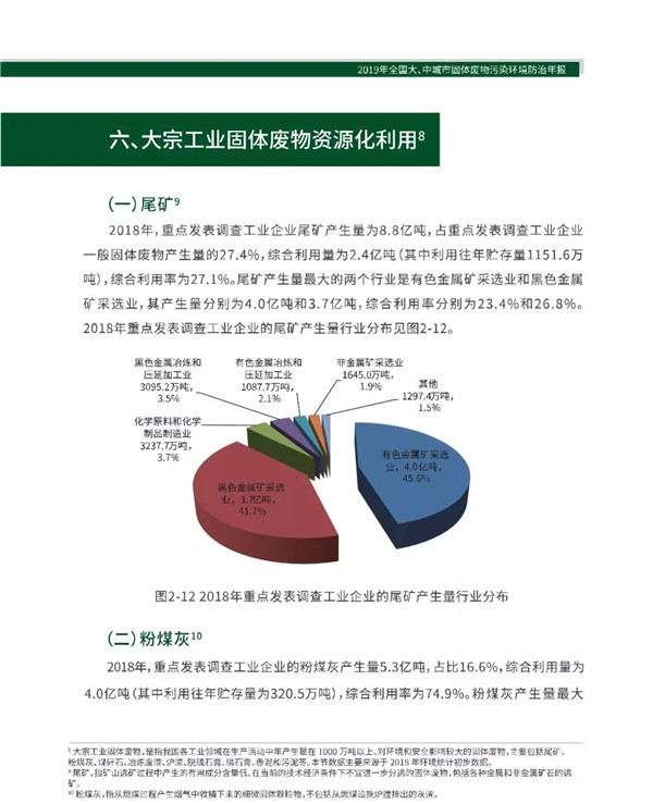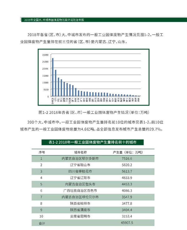 近日,《2019年全國大、中城市固體廢物污染環(huán)境防治年報》公布,2019固廢年報顯示:2018年,200個(gè)大、中城市一般工業(yè)固體廢物產(chǎn)生量達15.5億噸,綜合利用量8.6億噸,處置量3.9億噸,貯存量8.1億噸,傾倒丟棄量4.6萬(wàn)噸。一般工業(yè)固體廢物綜合利用量占利用處置總量的41.7%,處置和貯存分別占比18.9%和39.3%,綜合利用仍然是處理一般工業(yè)固體廢物的主要途徑。