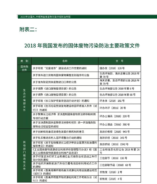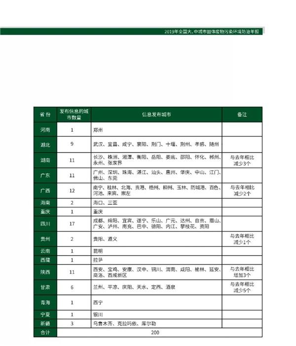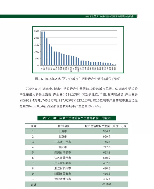 2018年,200個(gè)大、中城市生活垃圾產(chǎn)生量21147.3萬(wàn)噸,處置量21028.9萬(wàn)噸,處置率達99.4%。