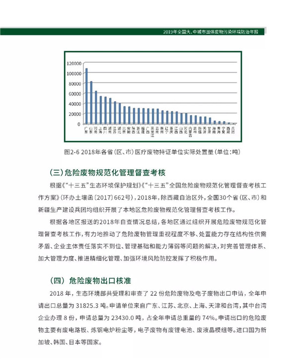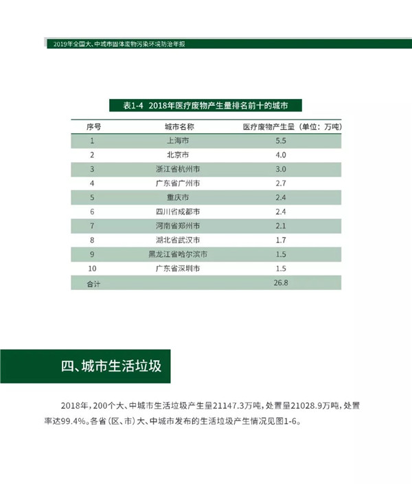 2018年,200個(gè)大、中城市醫療廢物產(chǎn)生量81.7萬(wàn)噸,處置量81.6萬(wàn)噸,大部分城市的醫療廢物都得到了及時(shí)妥善處置。