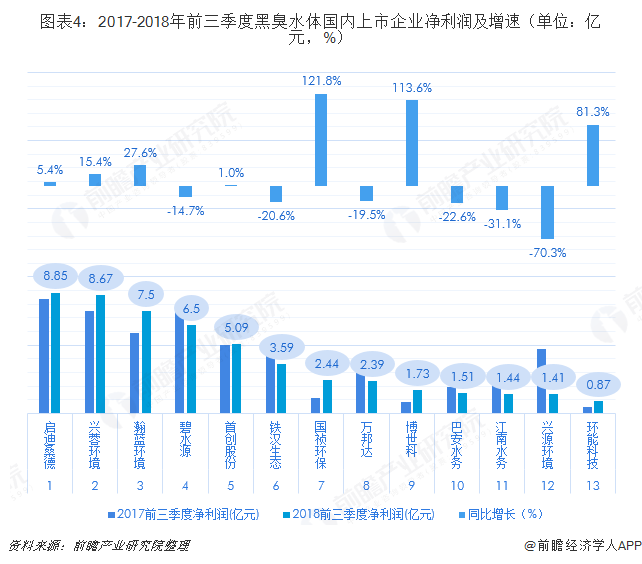 ? ? 前瞻產(chǎn)業(yè)研究院發(fā)布的《中國黑臭水體治理行業(yè)發(fā)展前景預測與投資戰略規劃分析報告》對黑臭水體治理產(chǎn)業(yè)鏈中的上市企業(yè)進(jìn)行了深入解讀。整體來(lái)看,國內具備整合設計、建設、融投資和運營(yíng)能力的環(huán)境治理運營(yíng)商較少,參與黑臭水體治理的合格運營(yíng)商數量較為有限。根據前瞻產(chǎn)業(yè)研究院的整理,目前在黑臭水體治理走在全國前列的環(huán)保企業(yè)主要有A股上市企業(yè)碧水源、啟迪桑德、首創(chuàng )股份、鐵漢生態(tài)、瀚藍環(huán)境、興蓉環(huán)境等,港股上市企業(yè)主要有康達國際環(huán)保,天津創(chuàng )業(yè)環(huán)保集團。