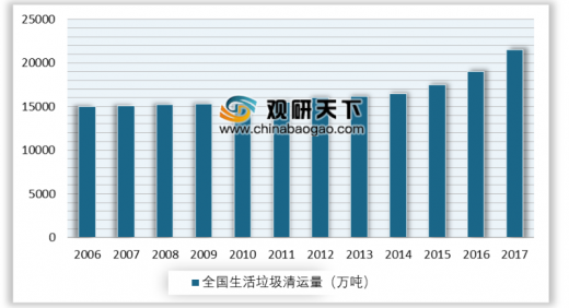 2006-2017年全國垃圾清運量(萬(wàn)噸)