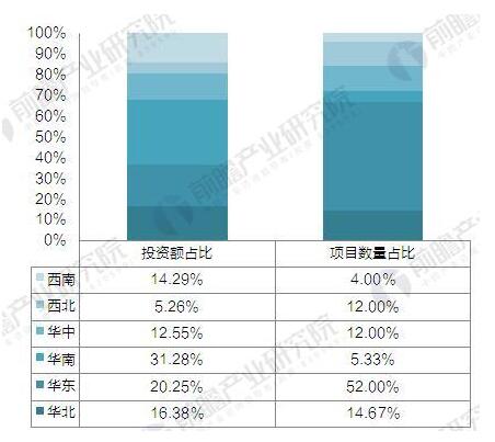 ? ? 分區域來(lái)看,華東地區的垃圾發(fā)電建設項目最多,共有39個(gè),占比達到52%,但投資總額低于華南地區,僅為13.41億元;華南地區僅有4個(gè)新項目建設,但投資額達到20.71億元,占比高達31.28%;西南地區的項目數量、西北地區的投資額為最低,分別為3項、3.48億元。