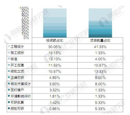 ? ? 從項目所處階段來(lái)看,工程設計階段的垃圾發(fā)電建設項目最多,共有31個(gè)、19.9億元投資額的在建、擬建項目,項目數量、投資額占比分別為41.33%、30.06%;其次是施工招標,雖然只有1個(gè)項目,但投資額達到12.68億元;處于報批立項階段的項目數量共10個(gè),僅次于工程設計階段,投資額為7.26億元;尚無(wú)已竣工運營(yíng)的項目。