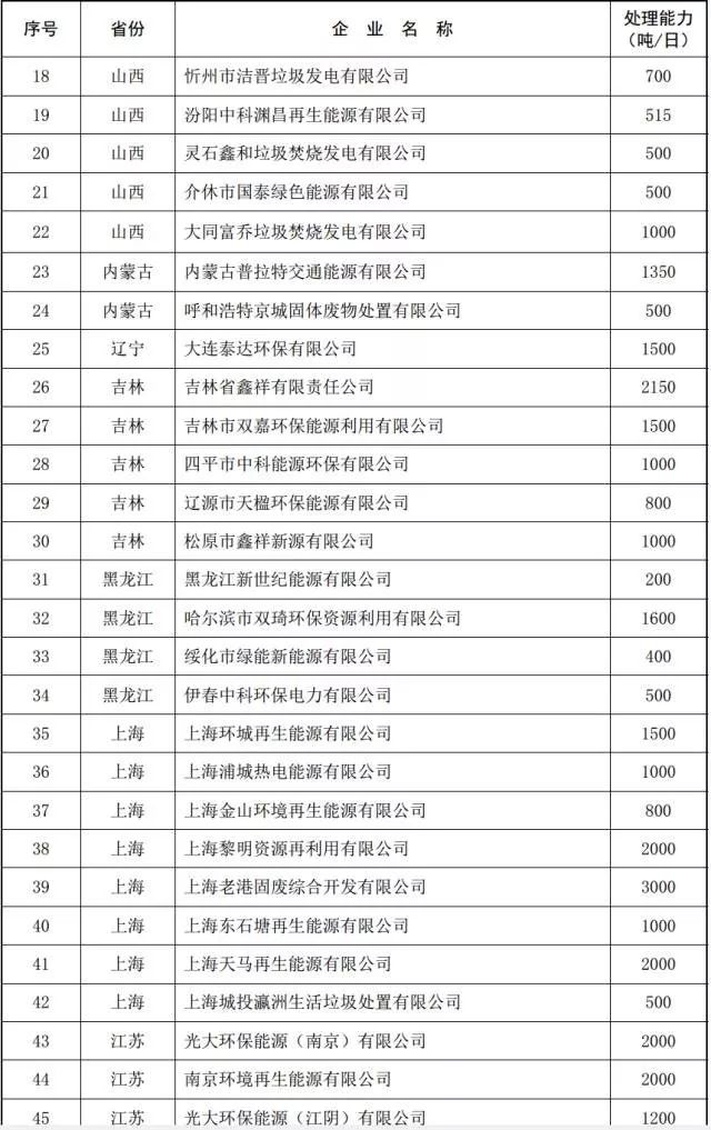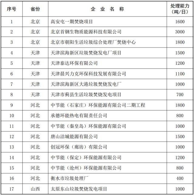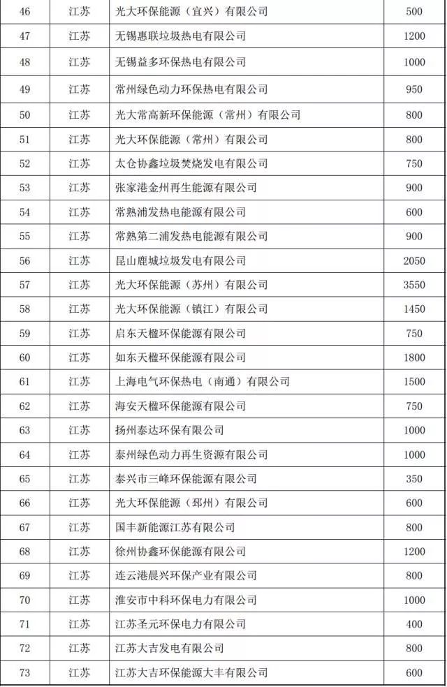 2016年底全國在運生活垃圾焚燒發(fā)電廠(chǎng)清單