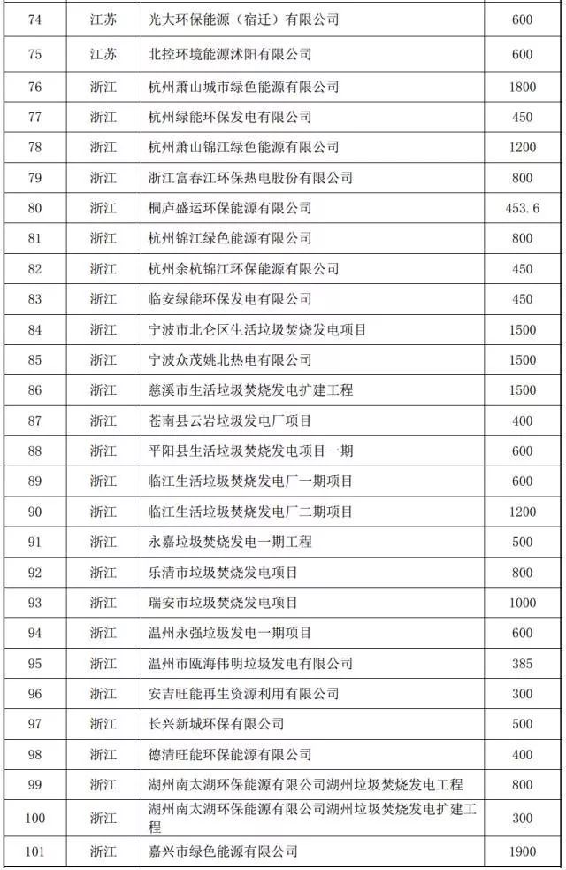 2017年以來(lái)全國垃圾發(fā)電擬建項目匯總
