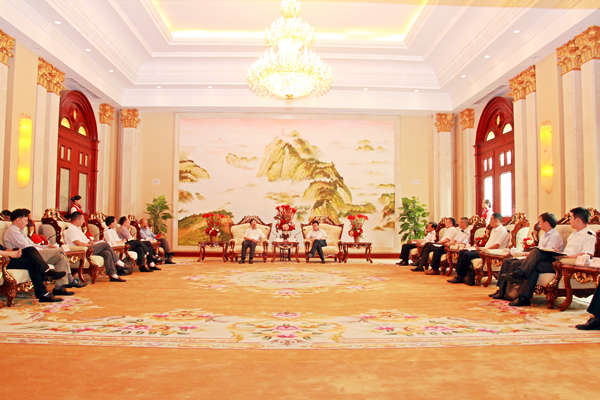???? 簽約儀式前郭景彬在國際會(huì )議中心六樓海螺廳會(huì )見(jiàn)了熊世明一行。